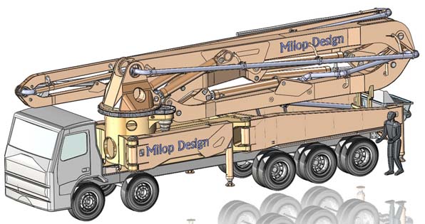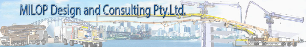 Concrete Pumping Plants and Equipment We have served this industry for over 20 years. Milop engineers are leading experts in this region for design, analysis, modification and certification of concrete boom pumps, tower concrete placing booms and other equipment for concrete pumping. We have developed and designed a wide range of the concrete booms from 17 m to 52 m reach. Our engineering services in this industry also include: - inspection, certification and assessment of concrete boom pumps and tower placing booms for continued operation - “one side operation” - testing and certification of the concrete boom pumps for operation in restricted set up location where - design verification of the truck mounted concrete boom pumps and tower placing booms in accordance to Work Health and Safety Regulations 2011. - machine failure analysis